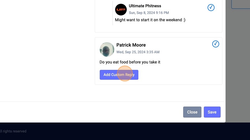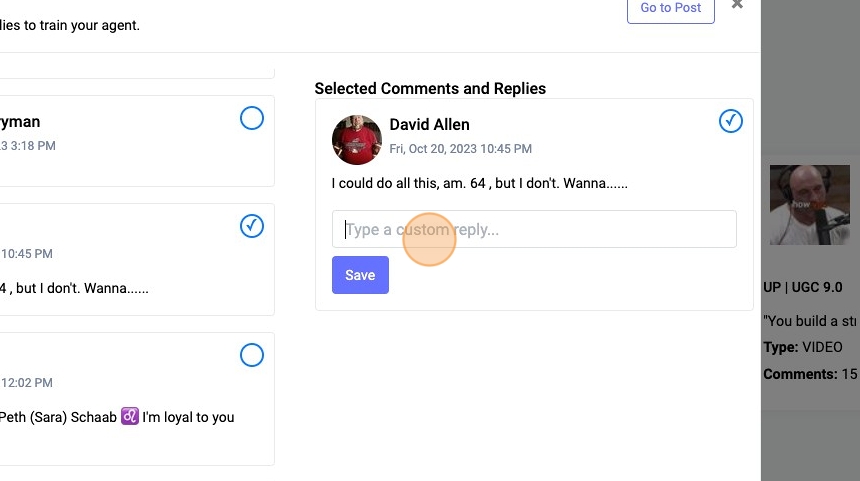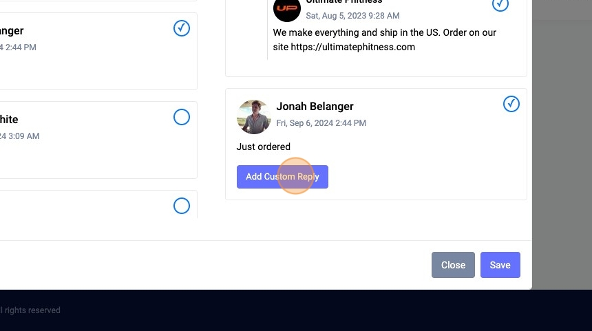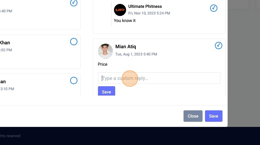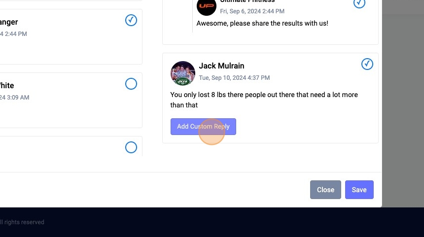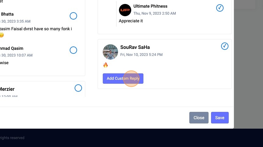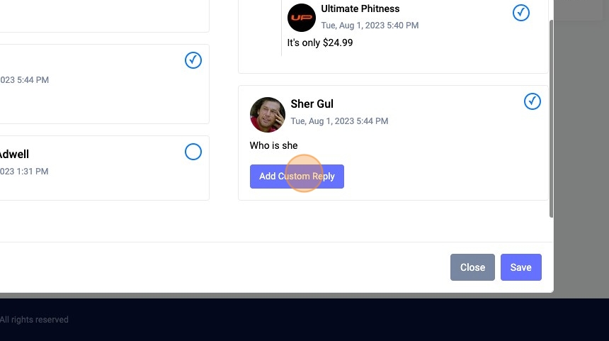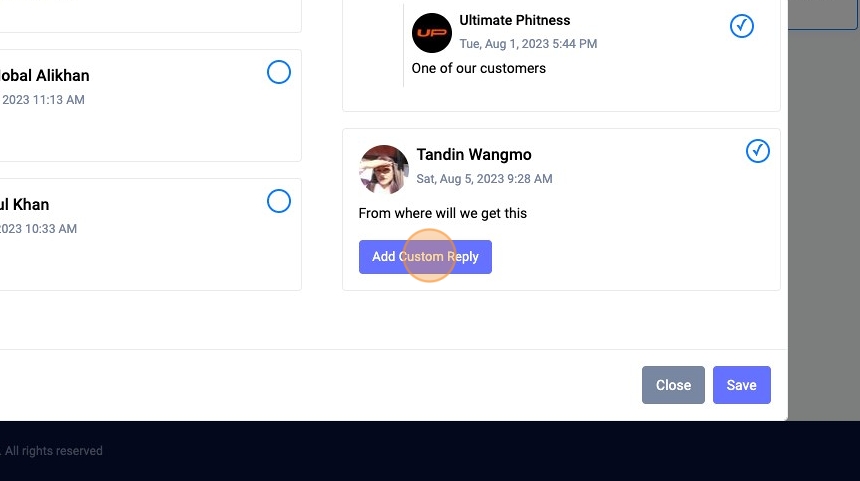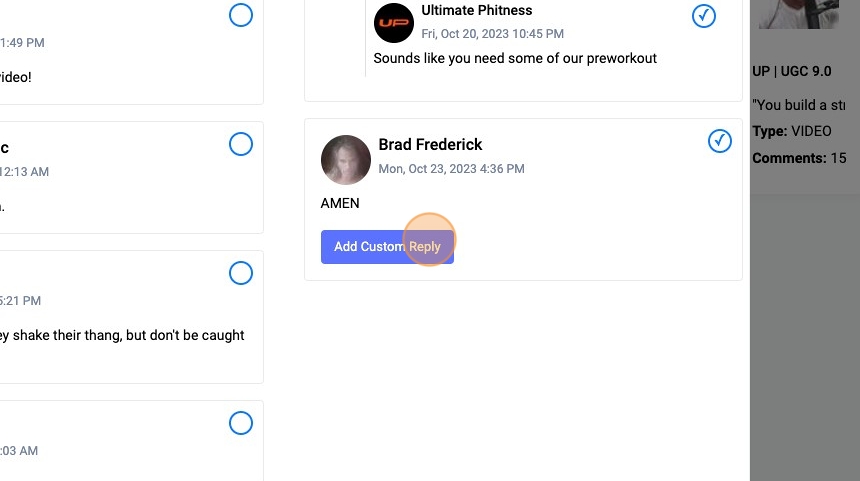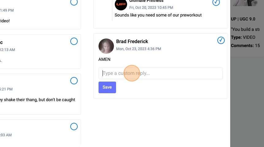 Tip: Tip! After selecting a comment, you will see an option to type a custom reply example