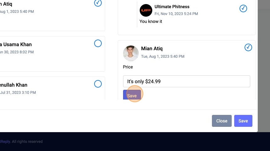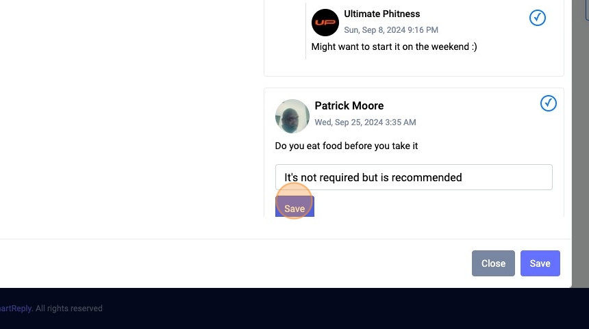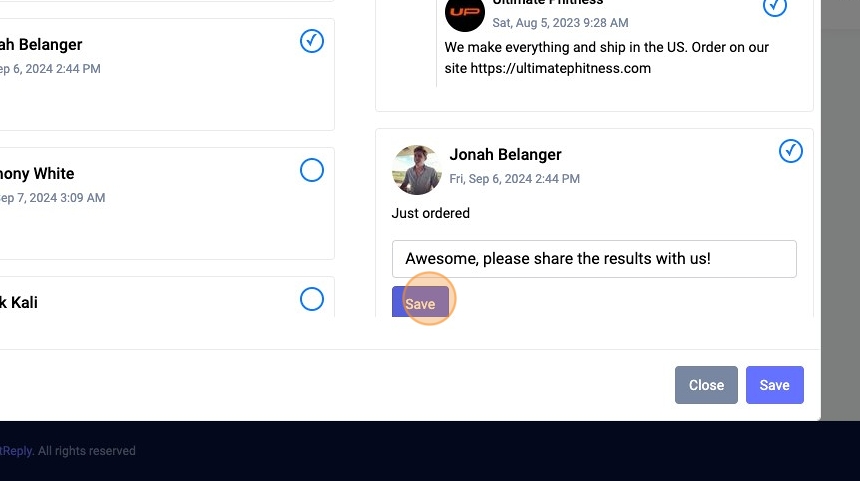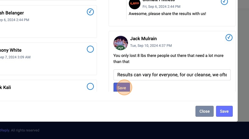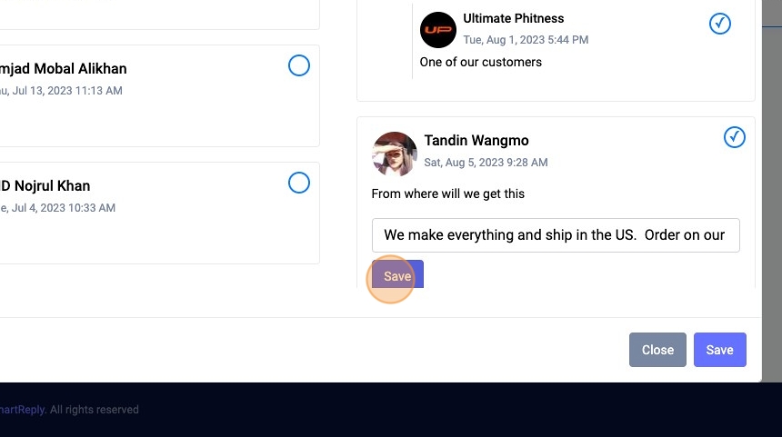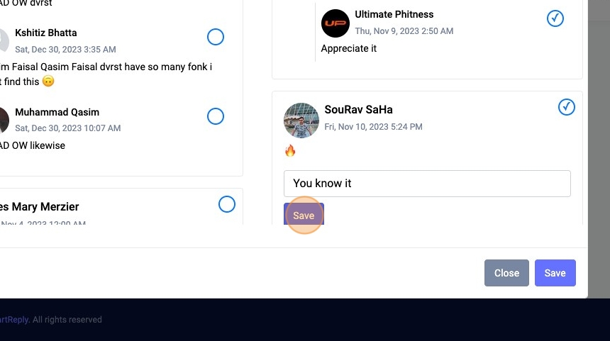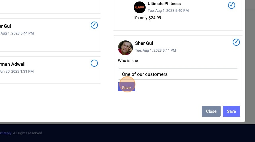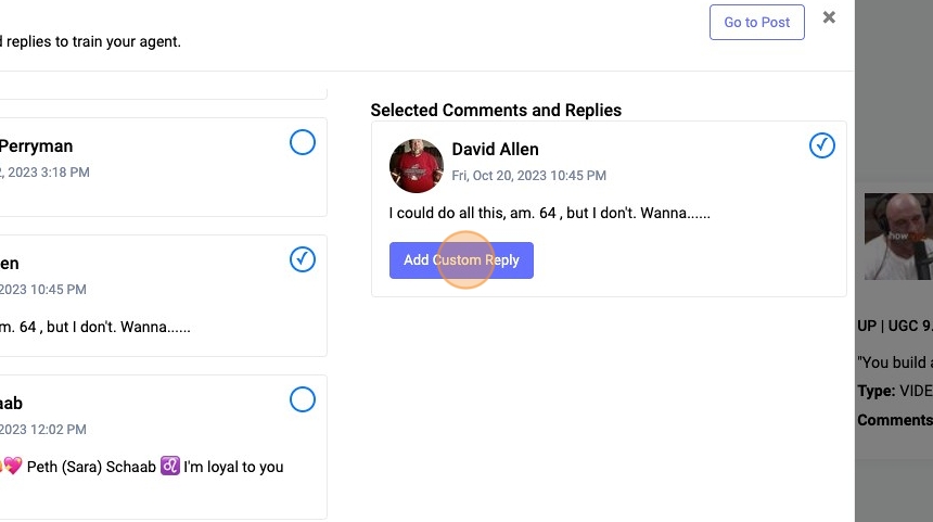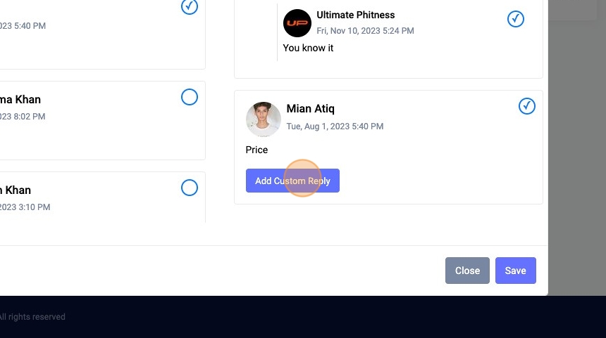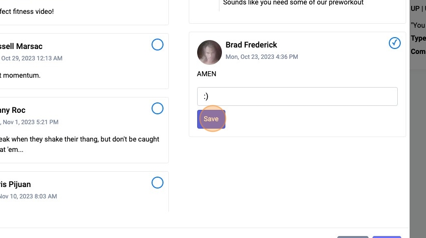 Tip: Tip! After selecting a comment, you will see an option to type a custom reply example
