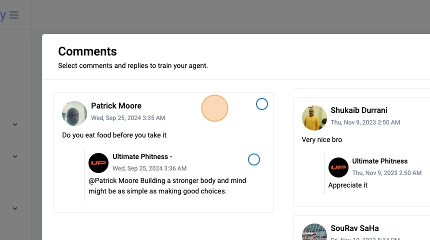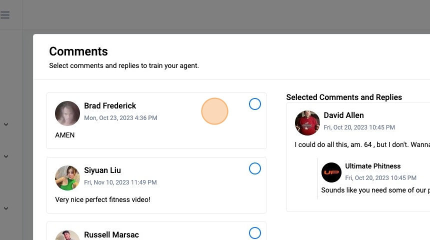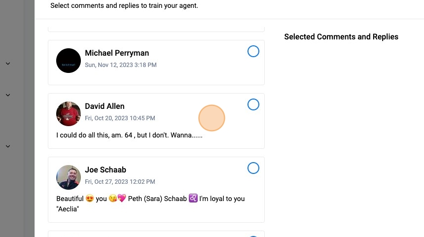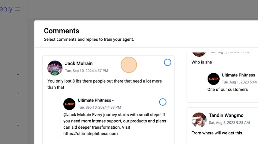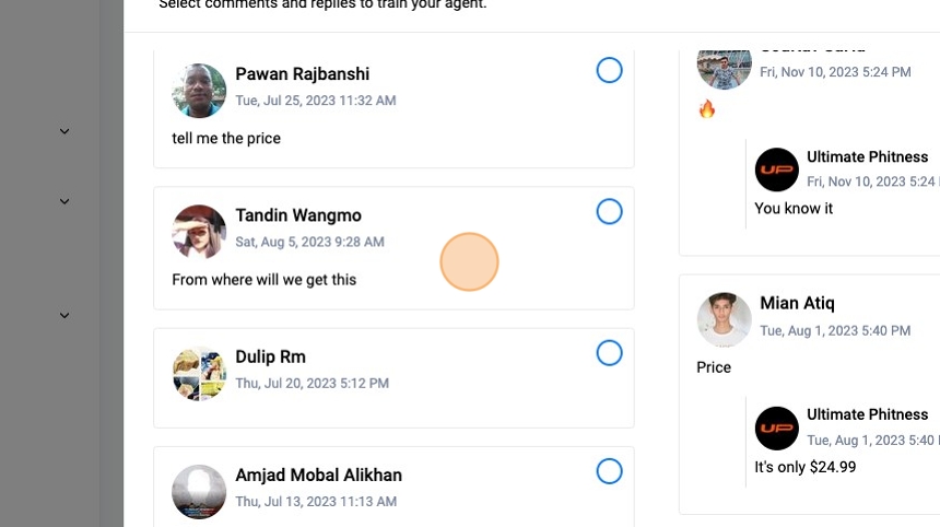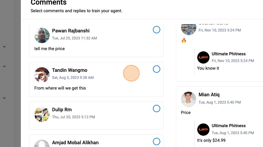 Tip: Tip! Try to select a wide variety of comment types an examples, from generic/emoji comments to more specific examples such as price inquires