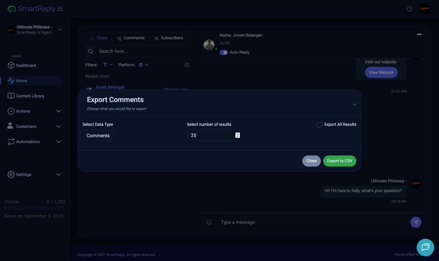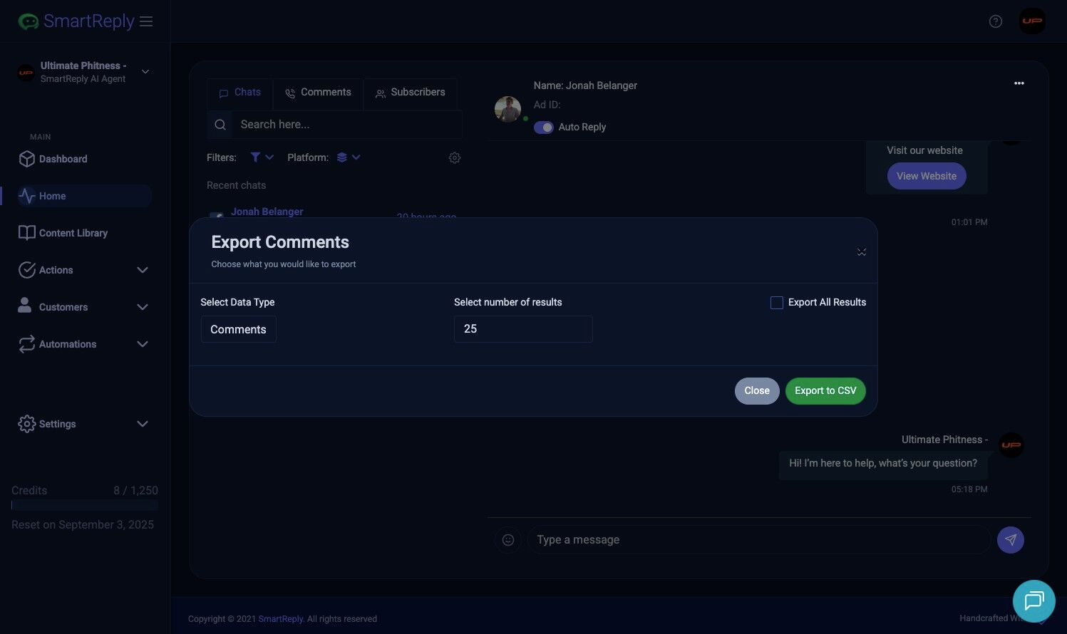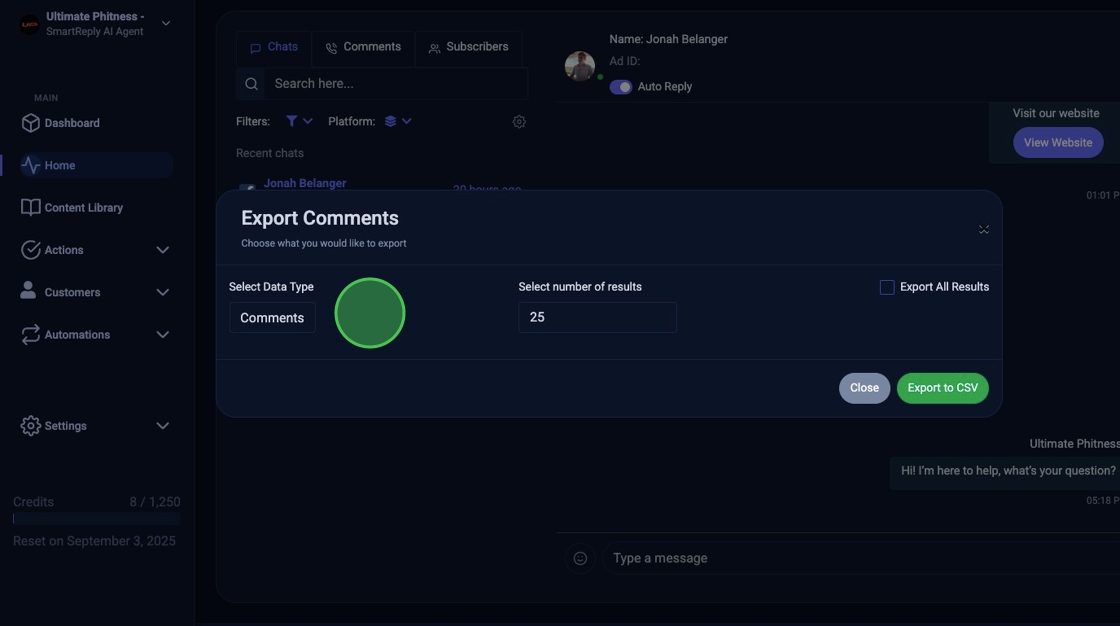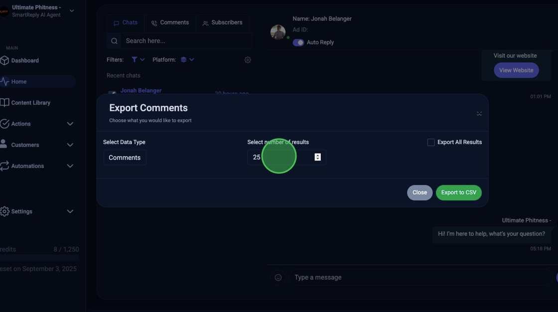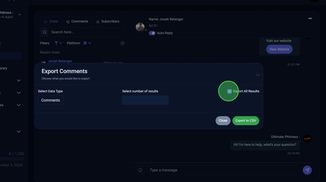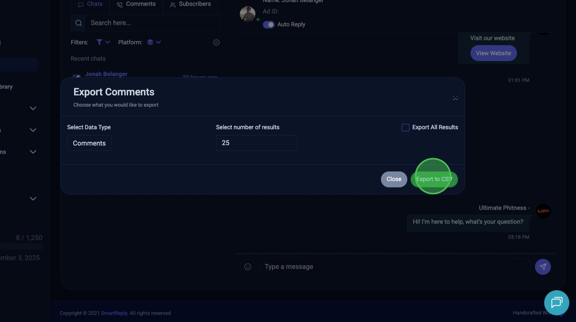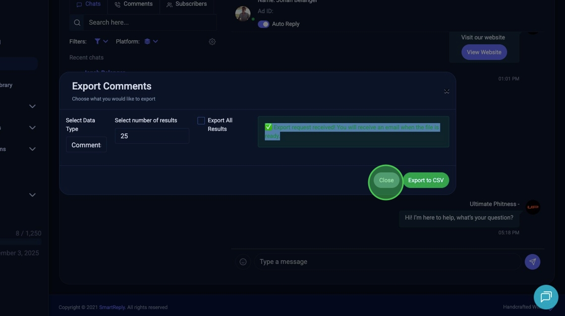 8. Click "Export to CSV"