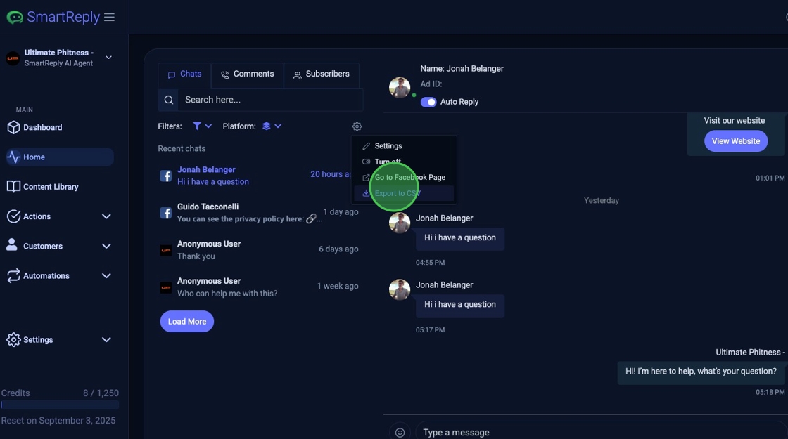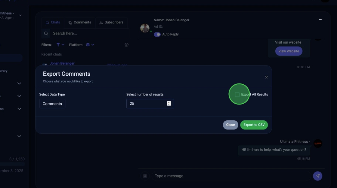 3. Click "Export to CSV"
